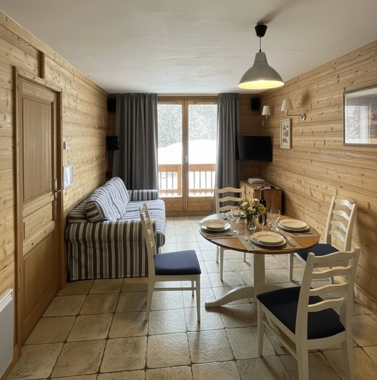 Un lieu convivial et chaleureux avec un divant-lit confortable. Le séjour donne accès à la terrasse exposée sud-ouest. Wi-fi gratuit dans l'appartement, télephone, Hi-Fi et une télévision à écran plat complète l'équipement. Il y a aussi, à votre disposition, des jeux de socièté.