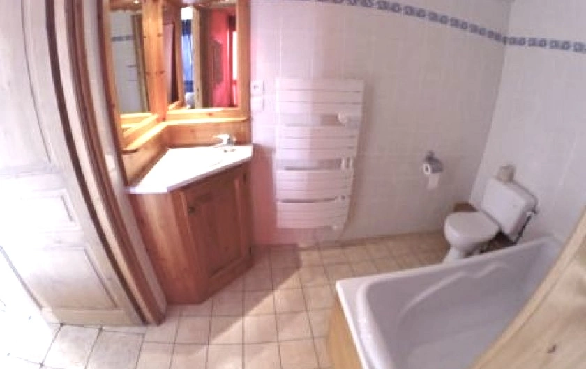 Salle de bain, à côté de la chambre principale. La salle de bain avec baignoire est aussi équipée d'une toilette. Une autre salle d'eau, équipée d'une douche, est attenante à la deuxième chambre.
